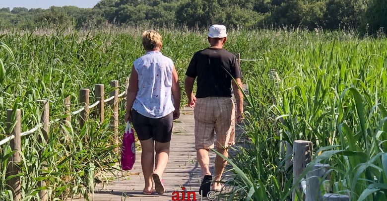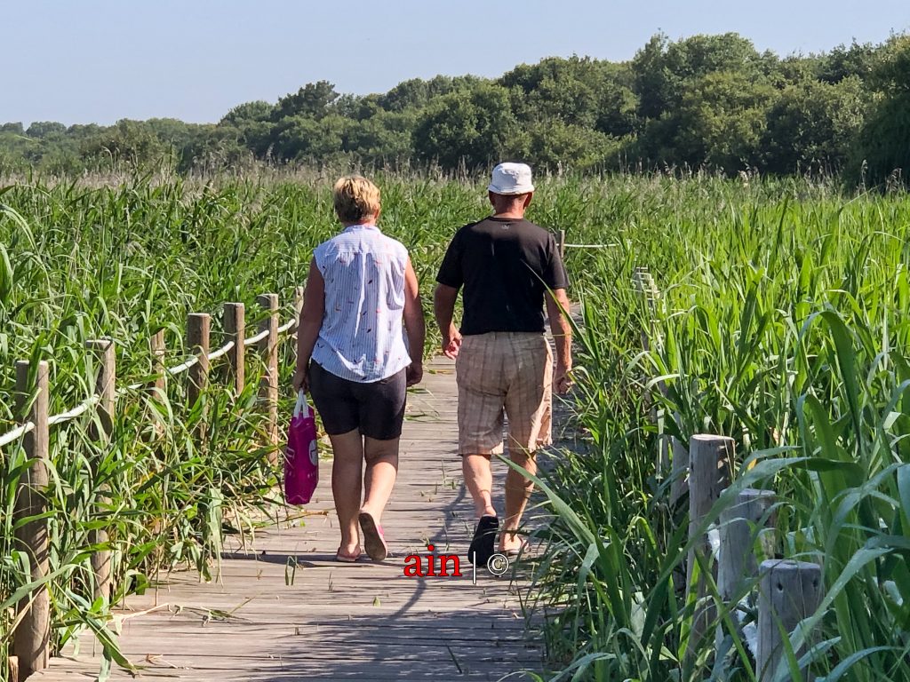 O bom tempo dos últimos dias levou a que muitas pessoas percorressem os oito quilómetros de passadiços que circundam a maior zona lagunar do norte do país, com quase 400 hectares, entre os concelhos de Ovar e de Espinho. Muitos eram aqueles que se desviavam em determinados locais do “amontoar de ervas” que invadem grande parte deste local de passagem.