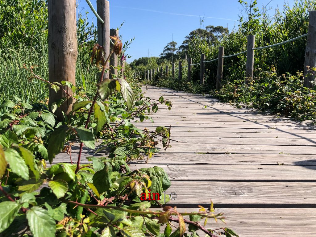 A barrinha de Esmoriz/lagoa de Paramos espreguiça-se por todos os cantos e rega as tábuas de madeira que agora são um caminho apetecido pelos que apreciam a natureza no seu esplendor. Os que passeiam, os que correm, os que andam de bicicleta.
