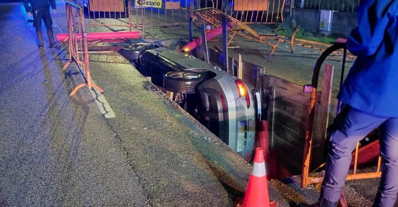 Um veículo ligeiro acabou dentro de uma escavação aberta numa frente de obra na Estrada Nacional 16, na zona do Sobreiro, em Albergaria-a-Velha, após se despistar enquanto circulava naquele troço.